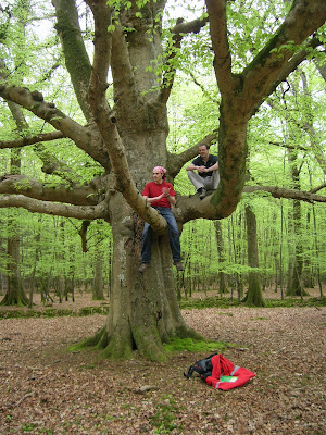 After a hearty porridge breakfast we set off on a bimble. We still weren’t sure how far/fast/high a pregnant person could walk, so we decided on something gentle up the Rannerdale Knotts. The path went straight out of our campsite, along a wood lined stream gorge and then up onto the grassy fells. It was lovely – we saw pretty much no-one, there were terrific views back across Buttermere and Crummock Water and I discovered that as long as I paced myself, I was still pretty fit! The route took us down into Rannerdale, which was full of bluebells and trees in blossom and then up the Knotts themselves. We weren’t always exactly sure of the optimum route – its all open access so there were lots of paths, and we probably didn’t go the most direct way, but even at only 355m, the top was well worth the effort. The view was great, over the lakes to the Haystacks (Wainwrights favourite fell) and eventually to the hazy blue smudge of Great Gable (we think!). It was a really pleasant way to gently see the non-lake assets of the Lake District.