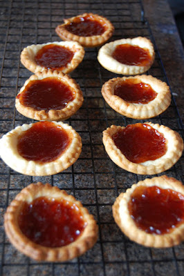 We had some pastry left over from Nimmy's (the house-elf) amazing gooseberry meringue pie, so Nathaniel and I settled down this morning to make jam tarts. I was really surprised at how well he managed! Rolling the pastry proved very difficult, which was odd considering how much rolling of things he's done recently.